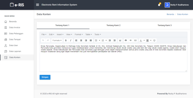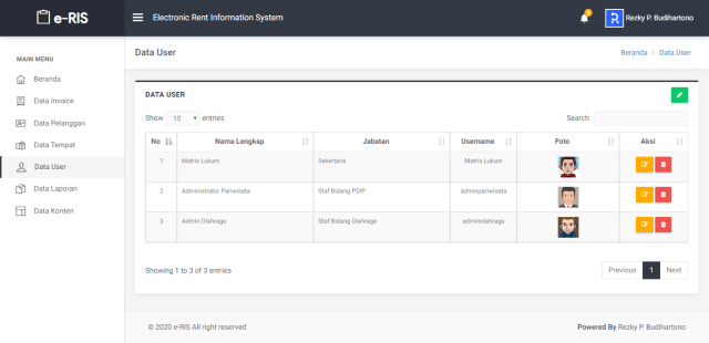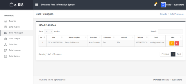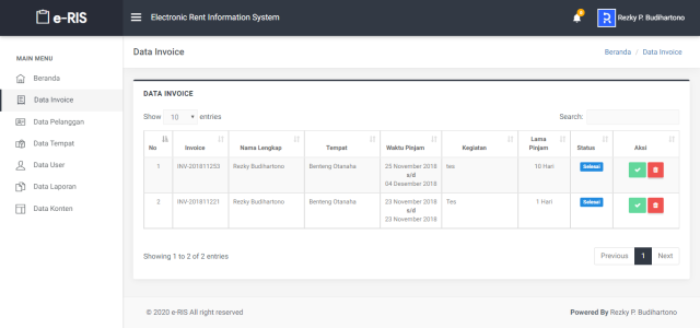 Sistem Informasi Rental (Electronic Rental System) ini dibangun untuk memudahkan peminjaman tempat wisata..