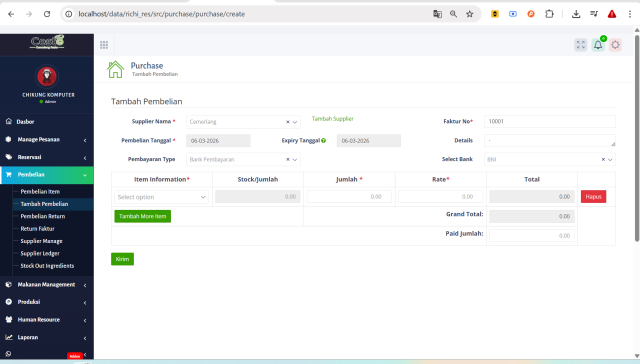 Aplikasi Point of Sale (POS) berbasis web untuk manajemen operasional
