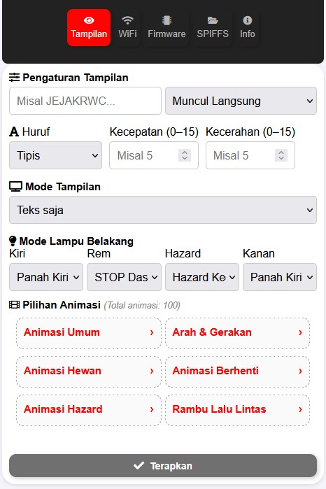 Buat tampilan kendaraanmu makin keren dan aman! Dengan STOP Lamp LED Matrix, atur teks, animasi, dan lampu belakang langsung dari browser tanpa aplikasi tambahan.