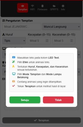 Klik Terapkan, langsung tampil di LED!