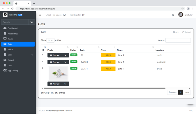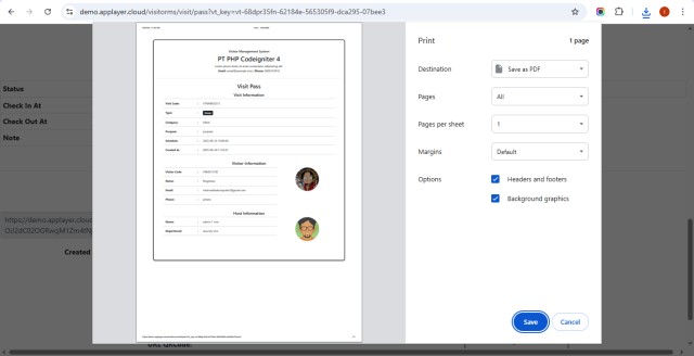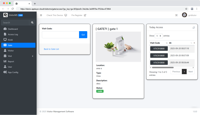 - Pemindai QR untuk memindai URL Kartu Kunjungan atau Kartu Gate Pass (opsional)