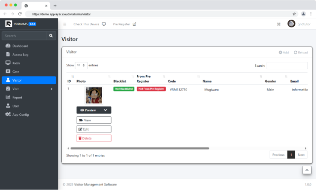 Aplikasi Berbasis Web untuk mengelola Visitor. Untuk Perusahaan ataupun organisasi.