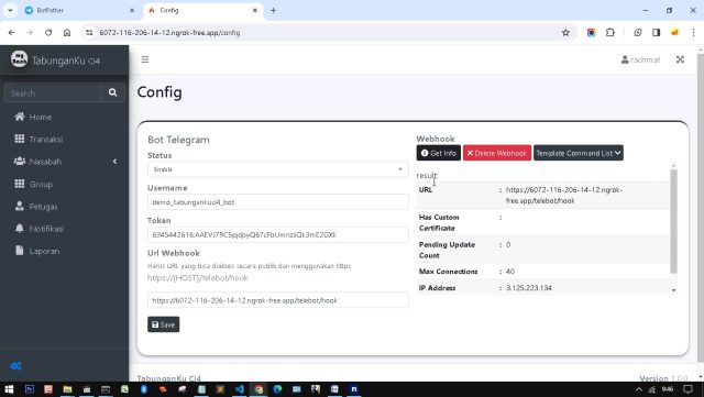 Selain Web Panel IBank, Nasabah bisa mengecek data Transaksinya melalui Bot Telegram.