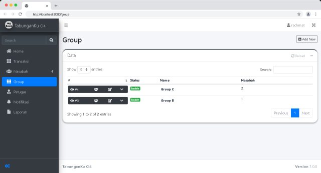 Fitur ini bermanfaat untuk mengelompokan Nasabah. Nasabah tidak terbatas pada satu Group.