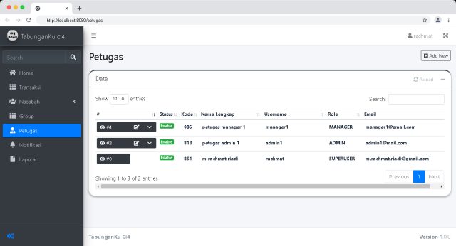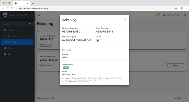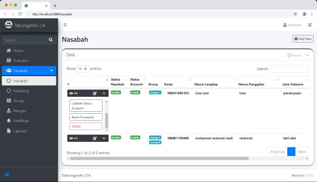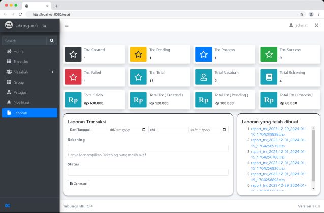 Merupakan Aplikasi berbasis Web yang digunakan untuk mengelola Tabungan Nasabah.