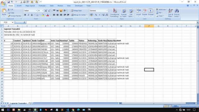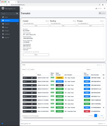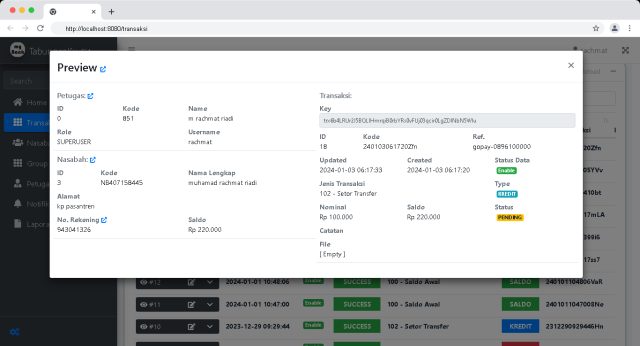 Web Panel khusus untuk Nasabah dapat melihat data Transaksi.