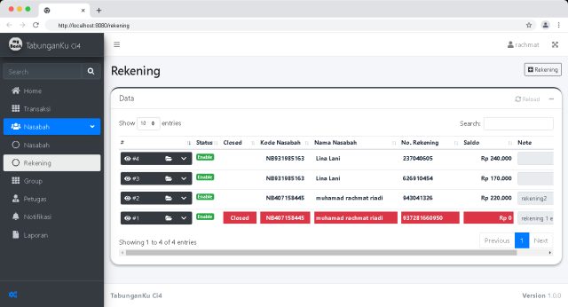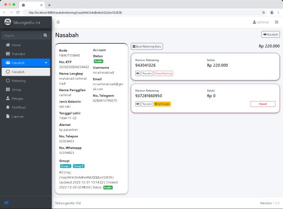Satu Nasabah bisa memiliki lebih dari satu Rekening. Dengan adanya fitur ini, pengelola bisa memisahkan tabungan berdasarkan tujuan pembuatan tabungan nya.