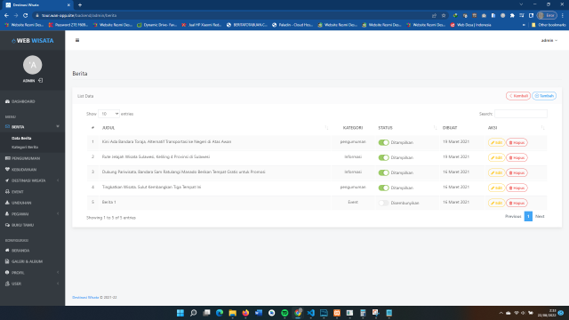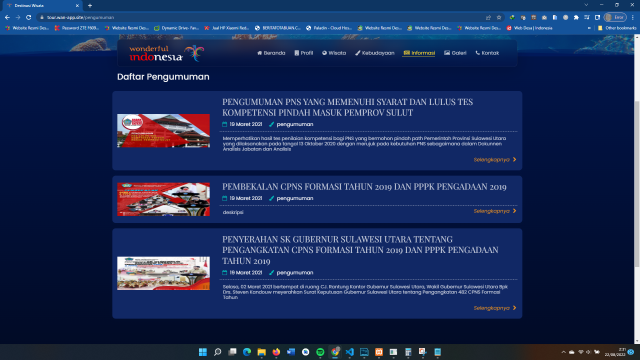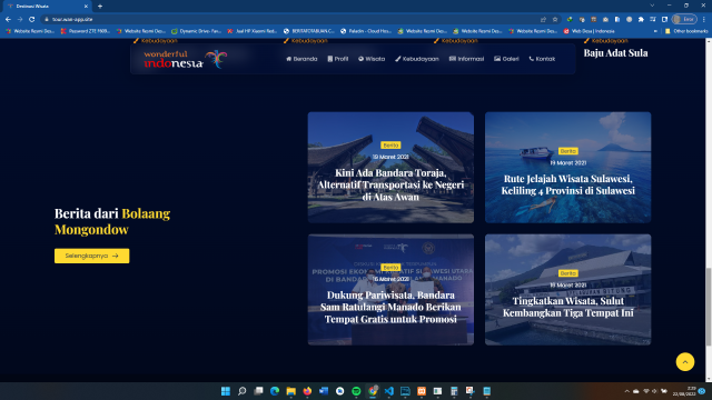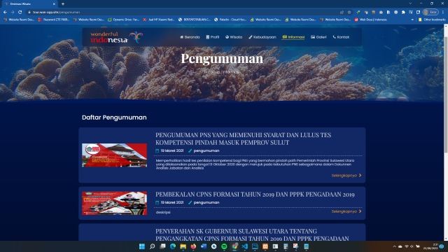 Website ini cocok juga digunakan untuk Dinas Parawisata yang bisa digunakan untuk mempublikasikan tempat wisata, hotel, dan budaya daerah.