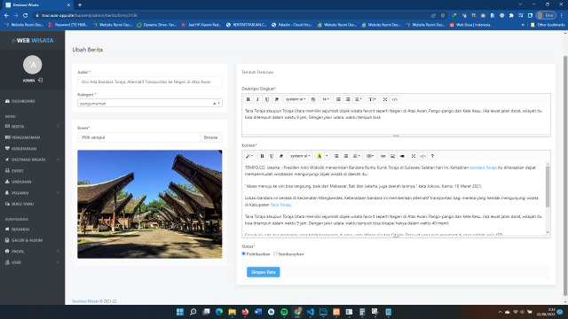 Web Destinasi Wisata memiliki beberapa fitur antara lain: