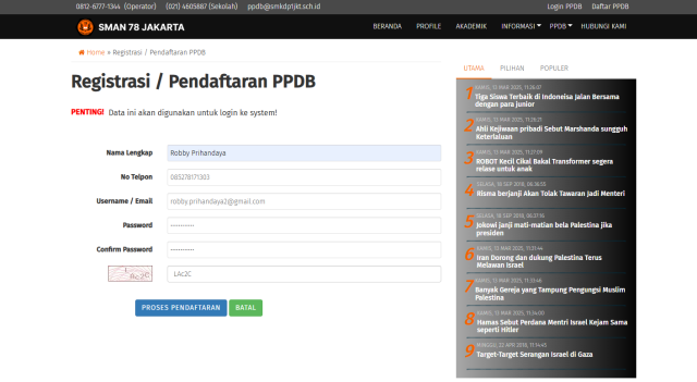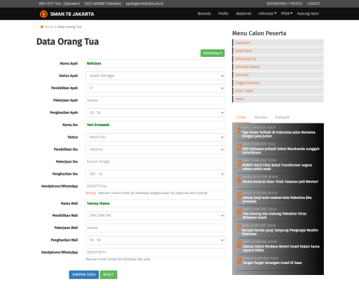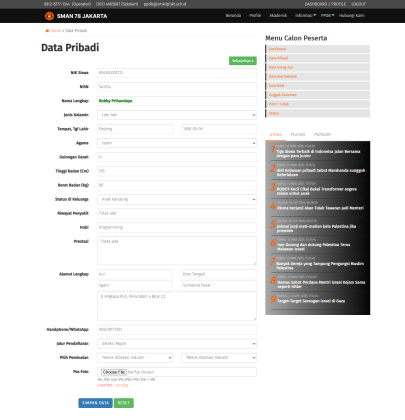 4. Calon siswa mengisi dan melengkapi nya seperti di screenshot yg telah kami lampirkan, sampai ke upload berkas juga.