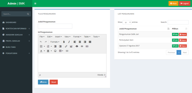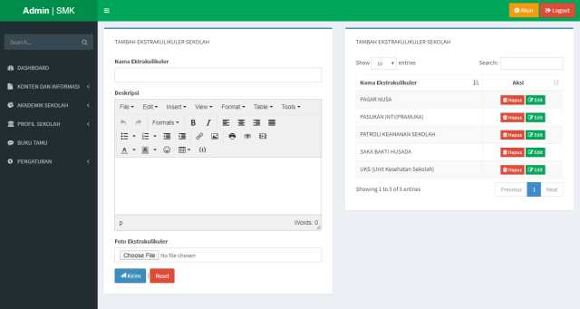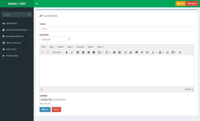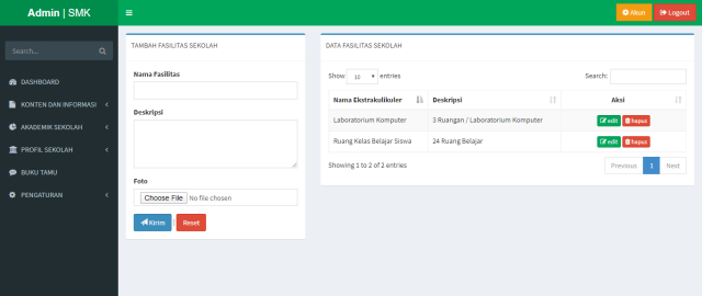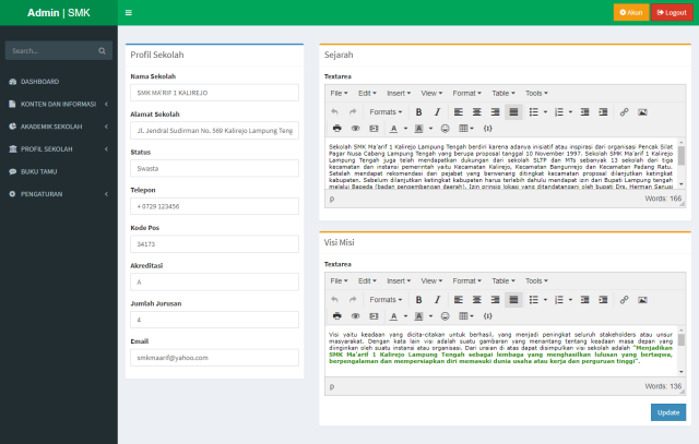 1. Profil Sekolah (Visi & Misi, Nama Sekolah, Sejarah, alamat, status, dll)