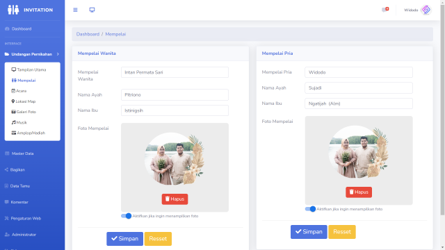 Web undangan digital ini hanya dikususkan untuk pribadi bukan usaha karna hanya 1 tema saja tetapi fiturnya sangat lengkap sudah terdapat scan qrcode tamu undangan cocok banget digunakan untukresepsi digedung yang sudah menggunakan scan barcode untuk para tamu undanganya.