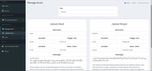 9. Terdapat manage untuk jadwal akad dan jadwal acara