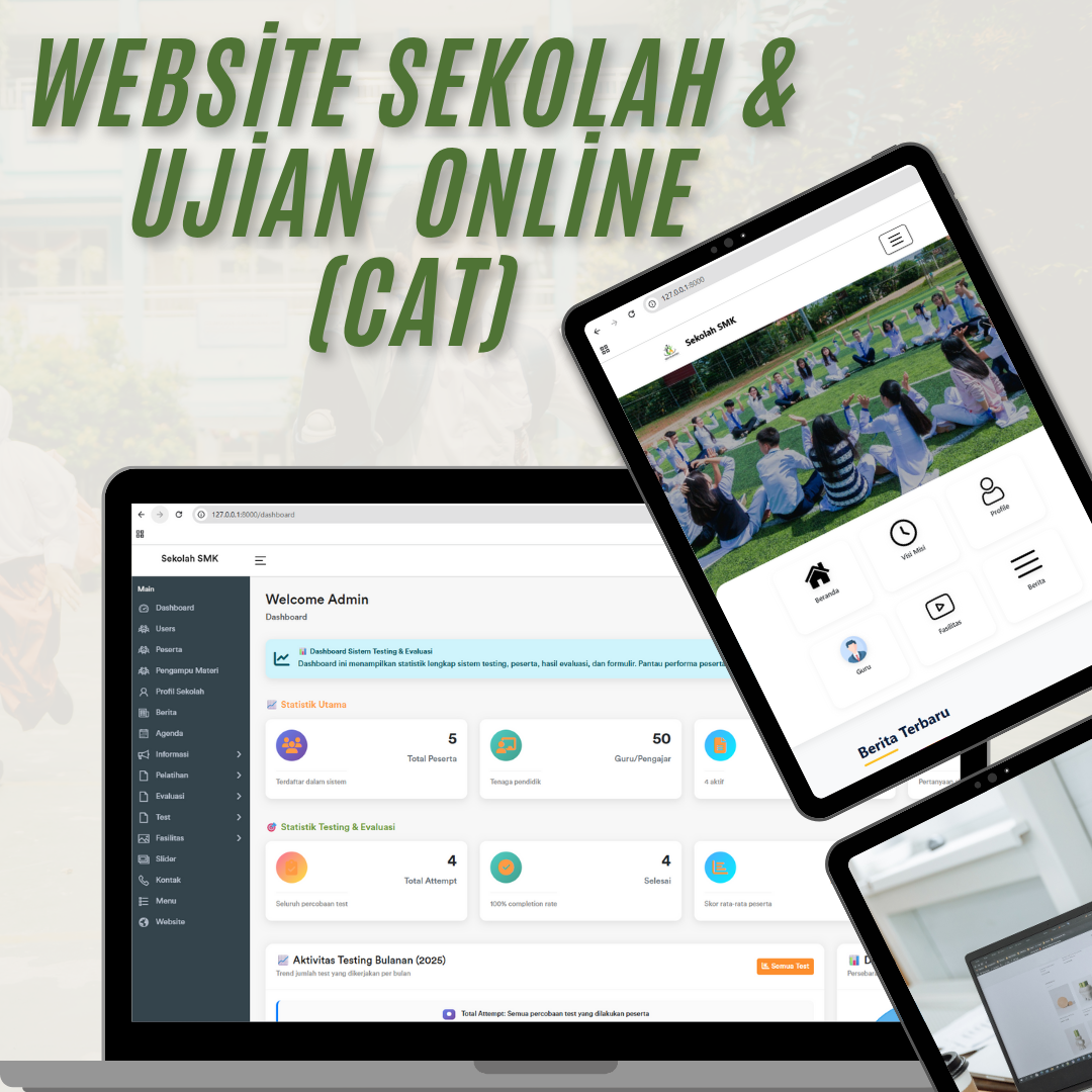 Website Sekolah ini siap pakai untuk sekolah yang ingin website profil profesional sekaligus platform administrasi & seleksi. Dibangun dengan Laravel 8 dan MySQL, mendukung PHP 7 & 8, desain responsif mobile-first, dan antarmuka admin intuitif.