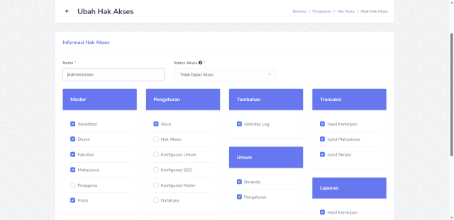 5. Terdapat fitur hak akses untuk mengatur menu.