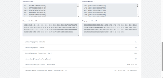 1. Perhitungan plagiarisme menggunakan metode Algoritma Winnowing.